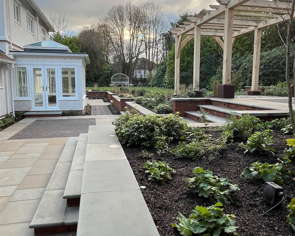 Traditional York stone paving was also used within this garden transformation, primarily in the garden courtyard. This unique blend of paving materials provides a sophisticated balance of traditional and contemporary elements, which complements the property perfectly.