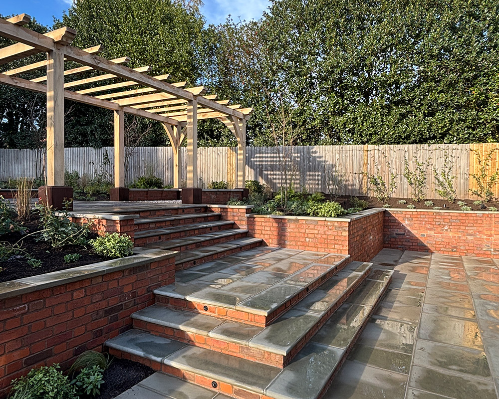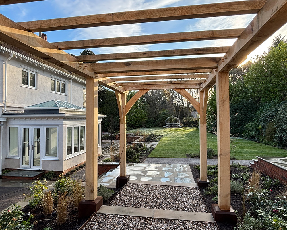 We designed and constructed a bespoke oak pergola, which adds both height and structure to the garden. This will be enhanced once the wisteria grows over the structure, adding more shelter, shade and aesthetic appeal to the overall landscape.
